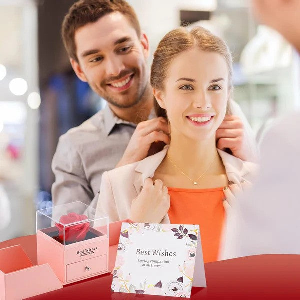 Vous souhaitez surprendre votre compagne ou votre maman avec un cadeau à la fois touchant et inoubliable ? Ces roses éternelle en forme de coeur avec un magnifique collier est parfait pour cette occasion.
