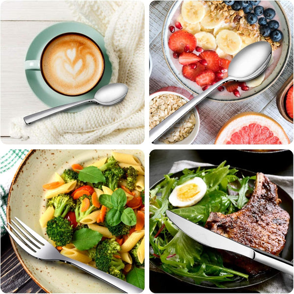 Transformez votre table avec notre lot de couverts 24 pièces au design poli-miroir. L'effet miroir brillant garde les couverts de restaurant toujours brillants. Fini les couverts qui ternissent ou qui ne durent pas ! Fabriqué en acier inoxydable de qualité supérieure, ce set offre une solidité à toute épreuve et une finition éclatante qui sublime vos repas. Que ce soit pour un dîner quotidien ou une réception, profitez de l’élégance et de la praticité réunies en un seul produit.