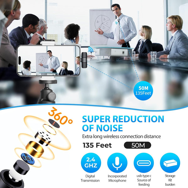 Il est équipé d'une batterie rechargeable de 80 MAH, capable de fonctionner en continu pendant 7 heures sans alimentation. Le récepteur du microphone est alimenté par votre appareil (peut être chargé en même temps). Pendant l'utilisation du micro cravate, vous pouvez charger votre appareil simultanément. Il a une très grande portée, vous permettant de vous débarrasser des fils encombrants et d'enregistrer ou de prendre des vidéos claires à une distance plus éloignée, que ce soit en intérieur ou en extérieur.