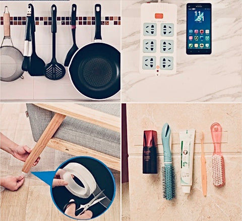 Le Nano Tape est la solution parfaite. Avec une capacité de maintien comparable à celle d'un cintre ou d'un clou, il vous permet de suspendre presque toutsans percer le moindre trou dans votre maison. De plus, le Nano Tape se distingue par son absence totale de résidus collants lorsque vous le retirez des murs, offrant ainsi une esthétique impeccable, bien supérieure à celle des autres rubans adhésifs. Elle se colle à toutes les surfaces telles que le mur de votre maison, l'espace de travail de votre bureau ou même dans votre voiture sans laisser de résidus. Sans solvant, sans colle, ne tache pas, sans produits chimiques, et non-toxique.